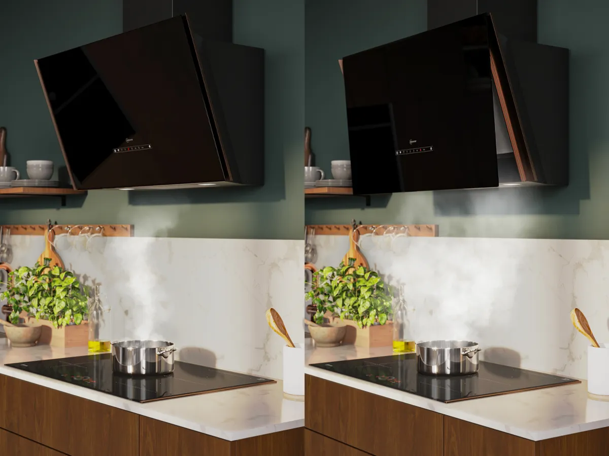 Power Boost für maximale LuftleistungWenn beim Kochen viel Dunst entsteht, sorgt Power Boost für extra Luftleistung. Durch Öffnen der Frontklappe steigert die Kopffreihaube im Schrägdesign ihre Leistung spürbar. Im Umluft-Betrieb neutralisiert der Premium Filter zuverlässig Gerüche und verbessert die Luftqualität deutlich.
