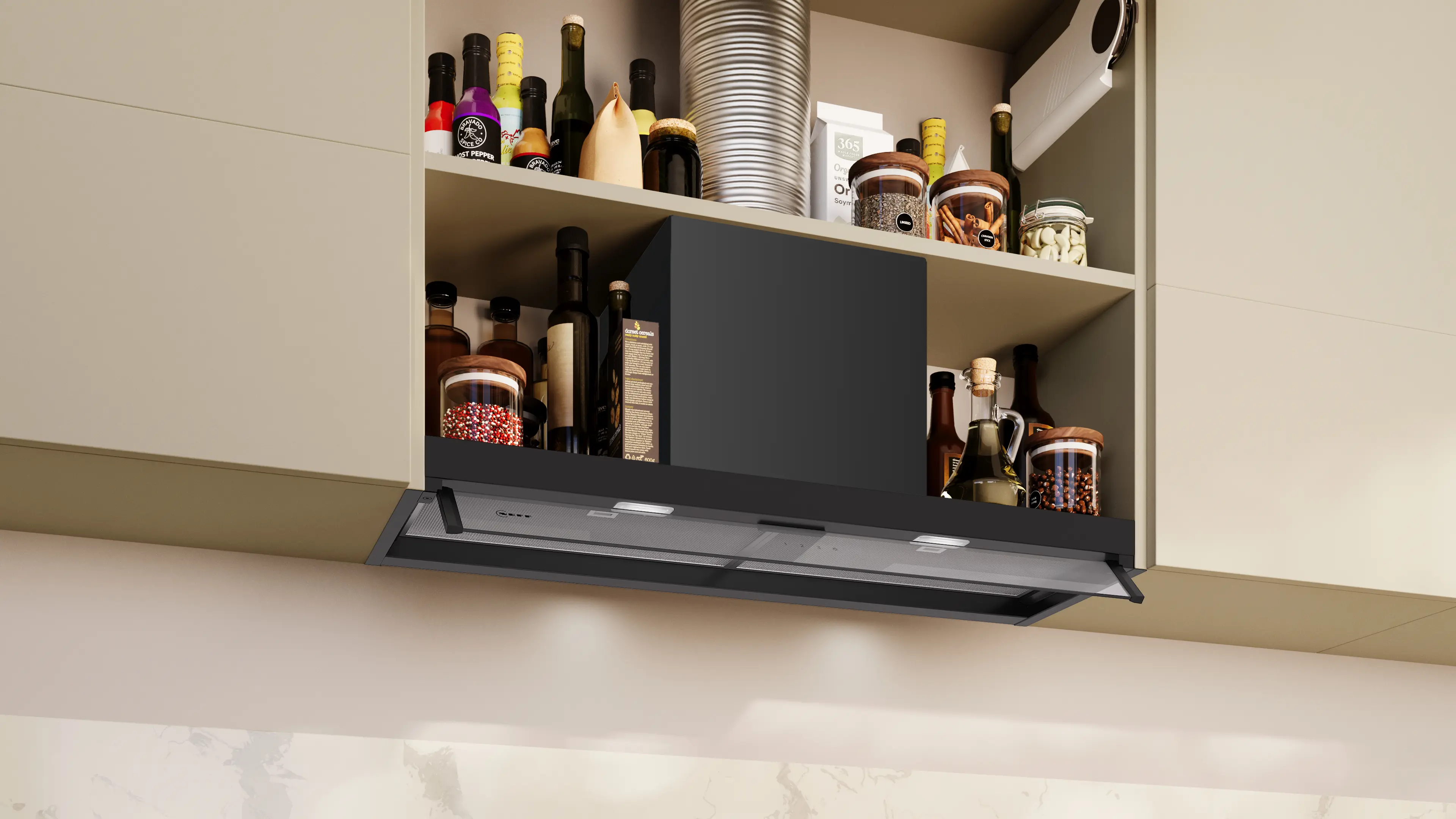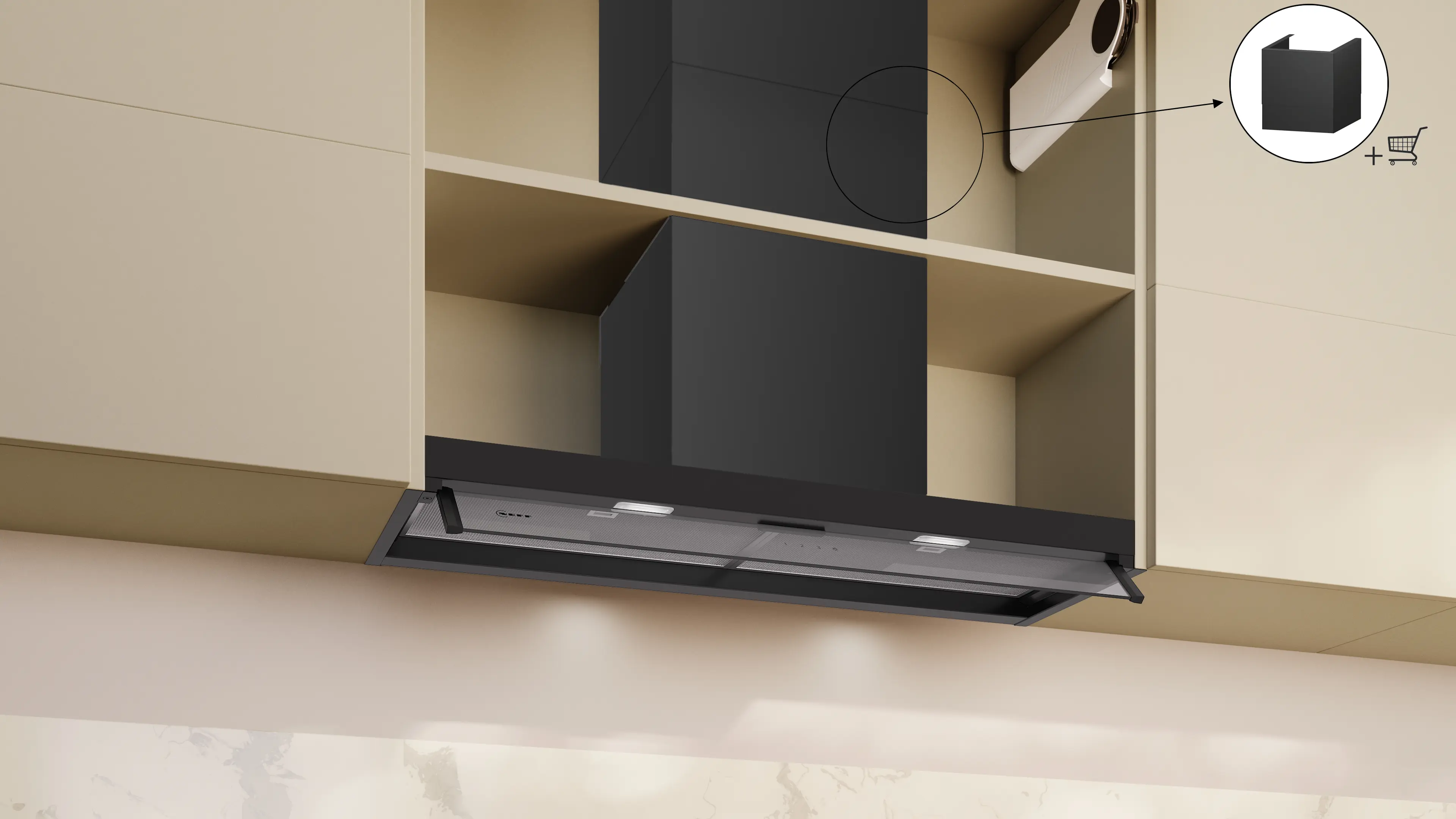 N 50 Integrierte Designhaube 90 cm Klarglas, MattschwarzD95XCC2S0