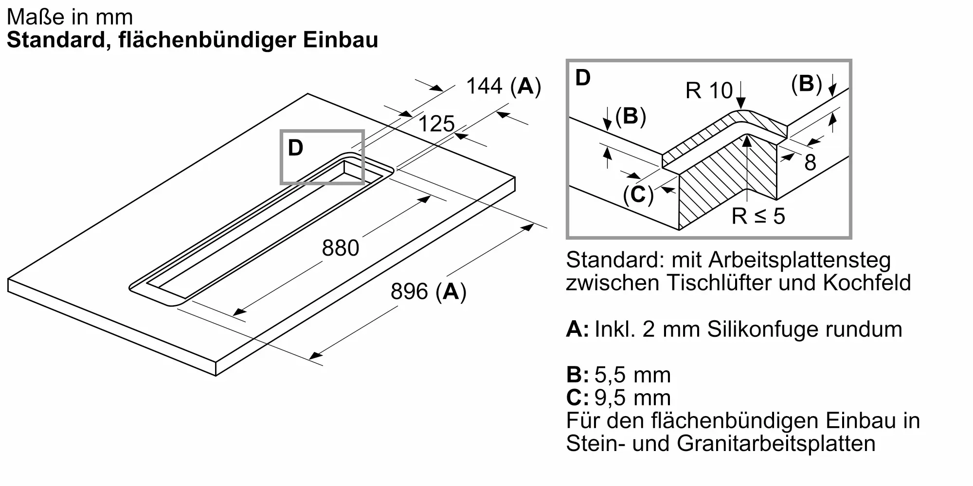 N 90 Tischlüfter 90 cm flächenbündiger EinbauI98WMM1S5