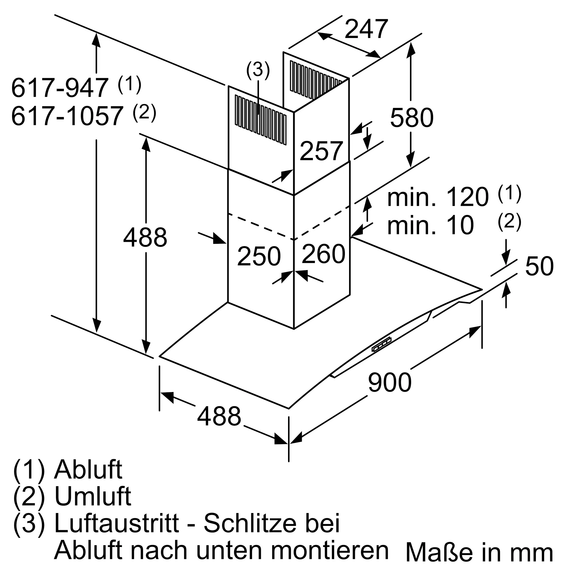 Abluft, Umluft (Sonderzubehör separat erhältlich)
