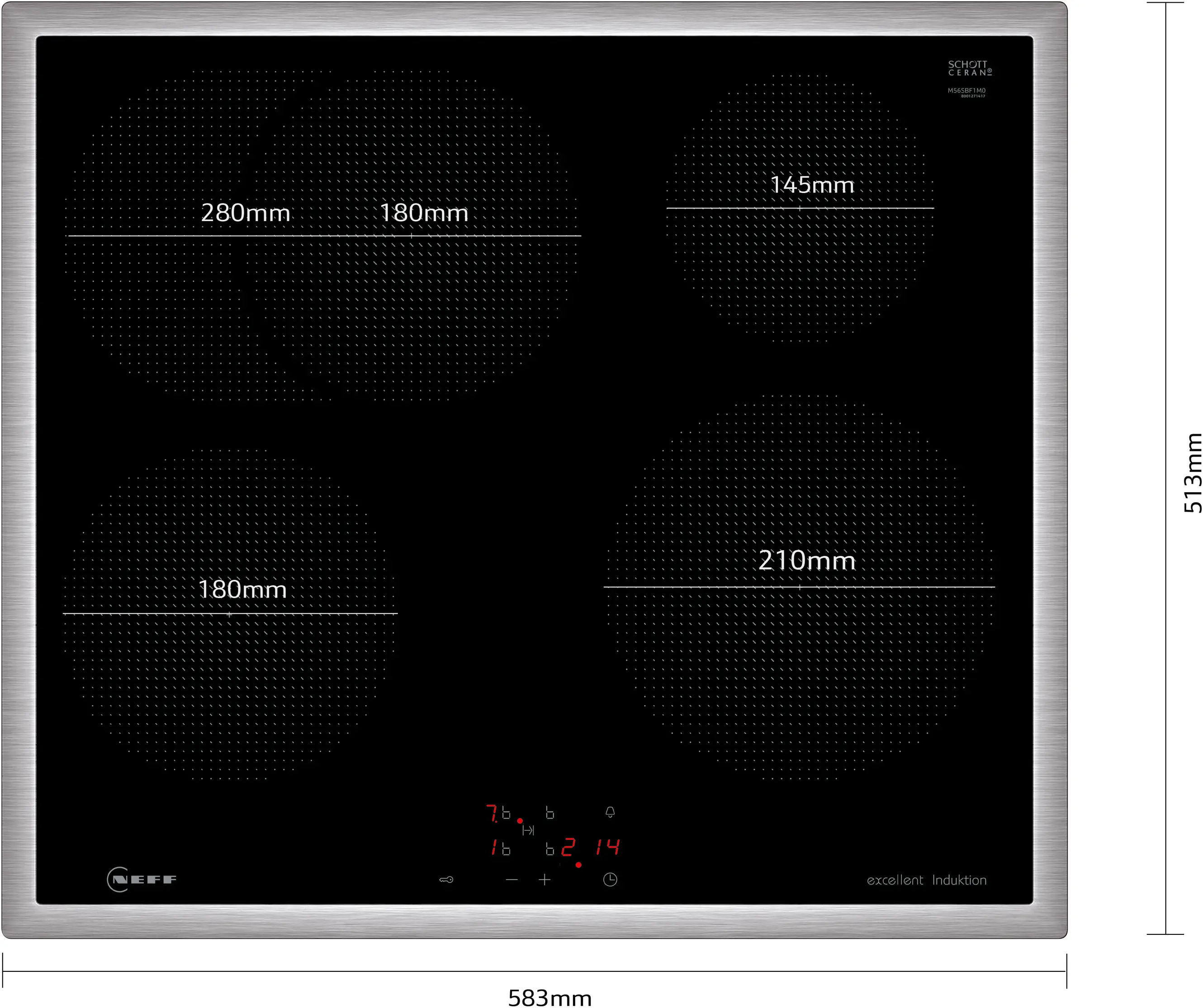N 50 Induktionskochfeld 60 cm herdgesteuert, Mit Rahmen aufliegendM56SBF1M0