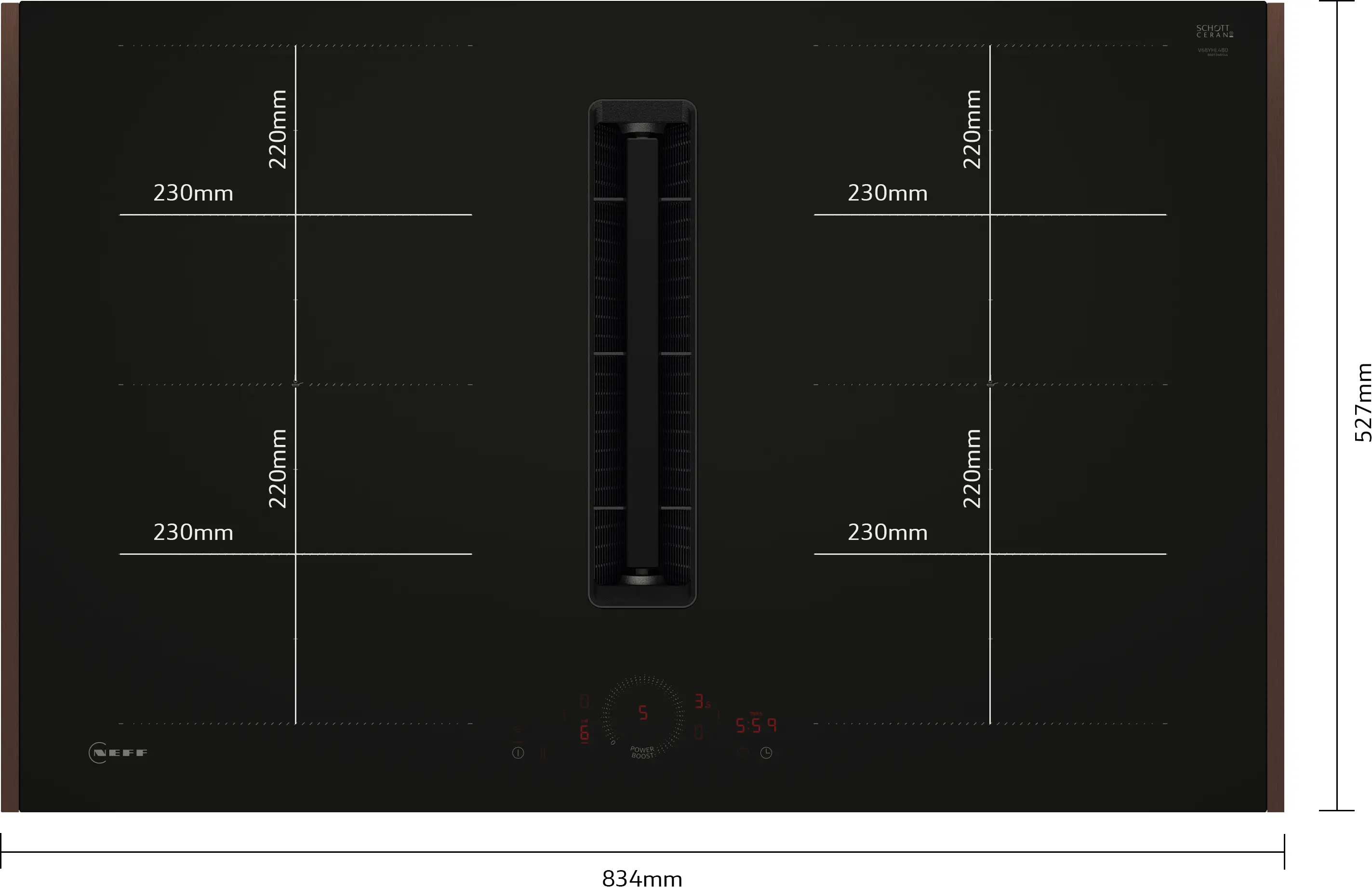 N 70 Induktionskochfeld mit Dunstabzug 80 cm Mattschwarz, Flex DesignV68YHL4B0