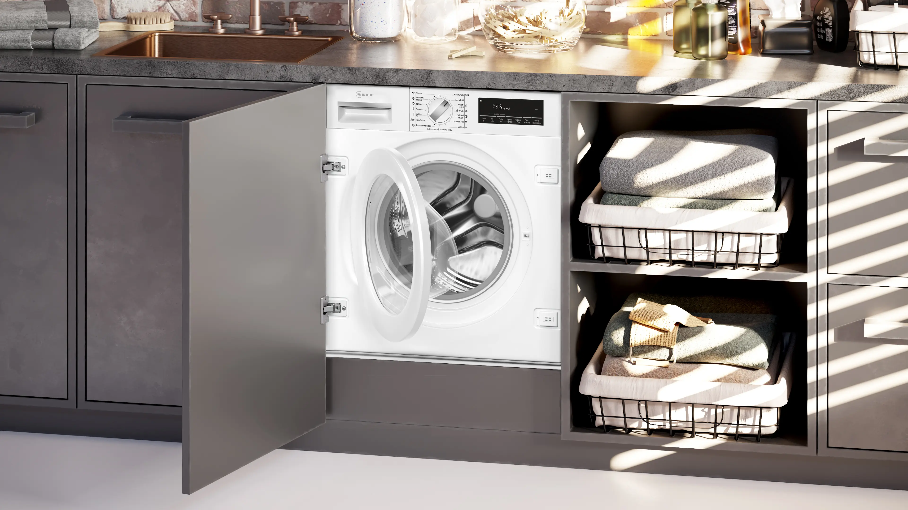 Vernetzte Hausgeräte mit Home Connect Fußnote 2: Wir stellen von Zeit zu Zeit funktionserhaltende Aktualisierungen (insbesondere Sicherheitsaktualisierungen) für vernetzte Hausgeräte bereit. Solche Updates sind von Smartphones bekannt. Um über die Verfügbarkeit eines solchen Updates für ein Home Connect-fähiges Gerät informiert zu werden, kann wie folgt vorgegangen werden: Home Connect App herunterladen. Gerät in der App registrieren und verbinden. In der Home Connect App stehen dann weitere Informationen bereit.,Fußnote 3: Einige der gezeigten Funktionen können nur genutzt werden, wenn das Gerät über das Internet mit einem Home Connect Account und einem Single-Key-ID-Account verbunden ist. Home Connect ist ein Service der Home Connect GmbH. Mehr Informationen zu Home Connect unter www.home-connect.com.