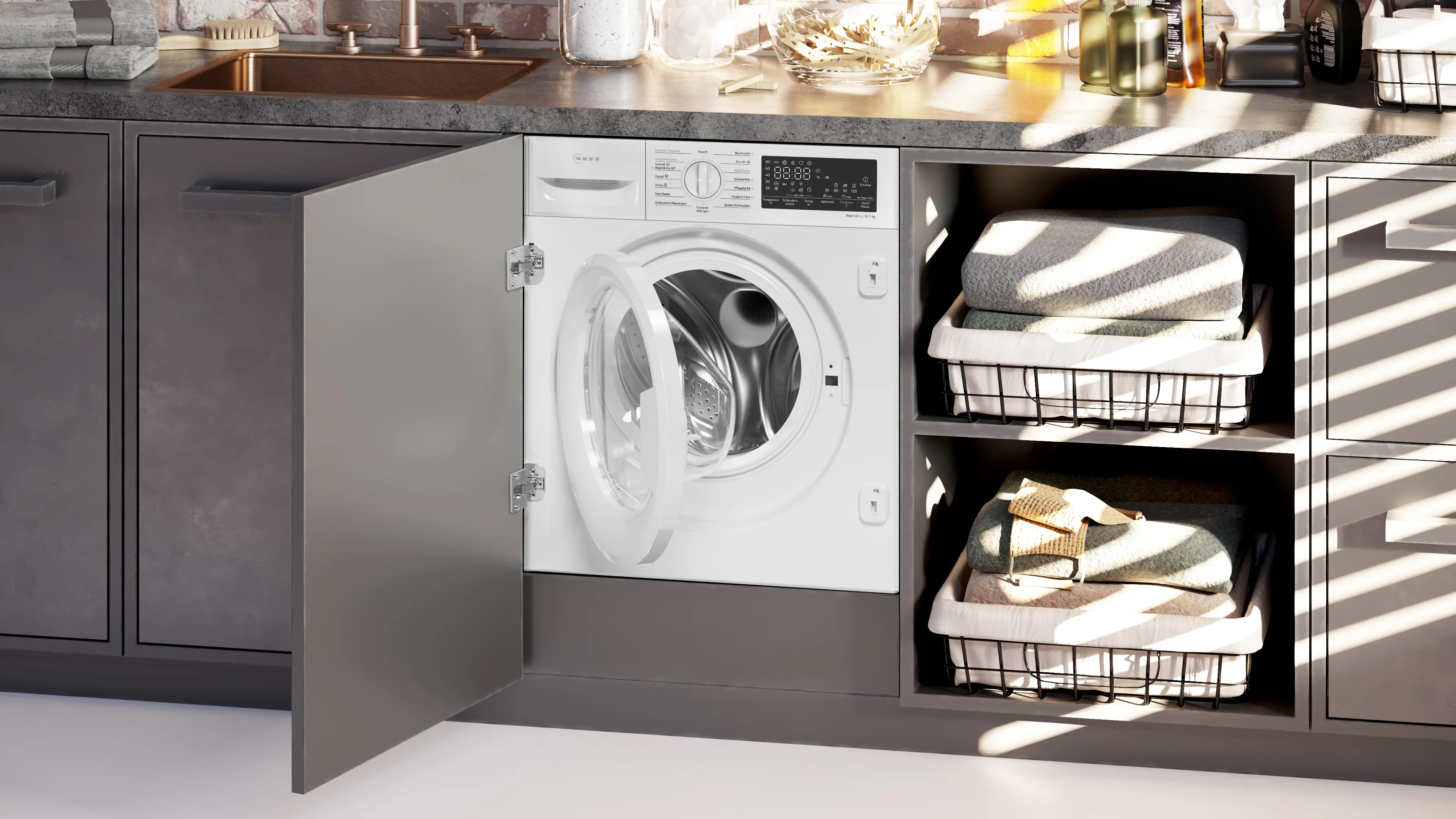 Vernetzte Hausgeräte mit Home Connect Fußnote 2: Wir stellen von Zeit zu Zeit funktionserhaltende Aktualisierungen (insbesondere Sicherheitsaktualisierungen) für vernetzte Hausgeräte bereit. Solche Updates sind von Smartphones bekannt. Um über die Verfügbarkeit eines solchen Updates für ein Home Connect-fähiges Gerät informiert zu werden, kann wie folgt vorgegangen werden: Home Connect App herunterladen. Gerät in der App registrieren und verbinden. In der Home Connect App stehen dann weitere Informationen bereit.,Fußnote 3: Einige der gezeigten Funktionen können nur genutzt werden, wenn das Gerät über das Internet mit einem Home Connect Account und einem Single-Key-ID-Account verbunden ist. Home Connect ist ein Service der Home Connect GmbH. Mehr Informationen zu Home Connect unter www.home-connect.com.