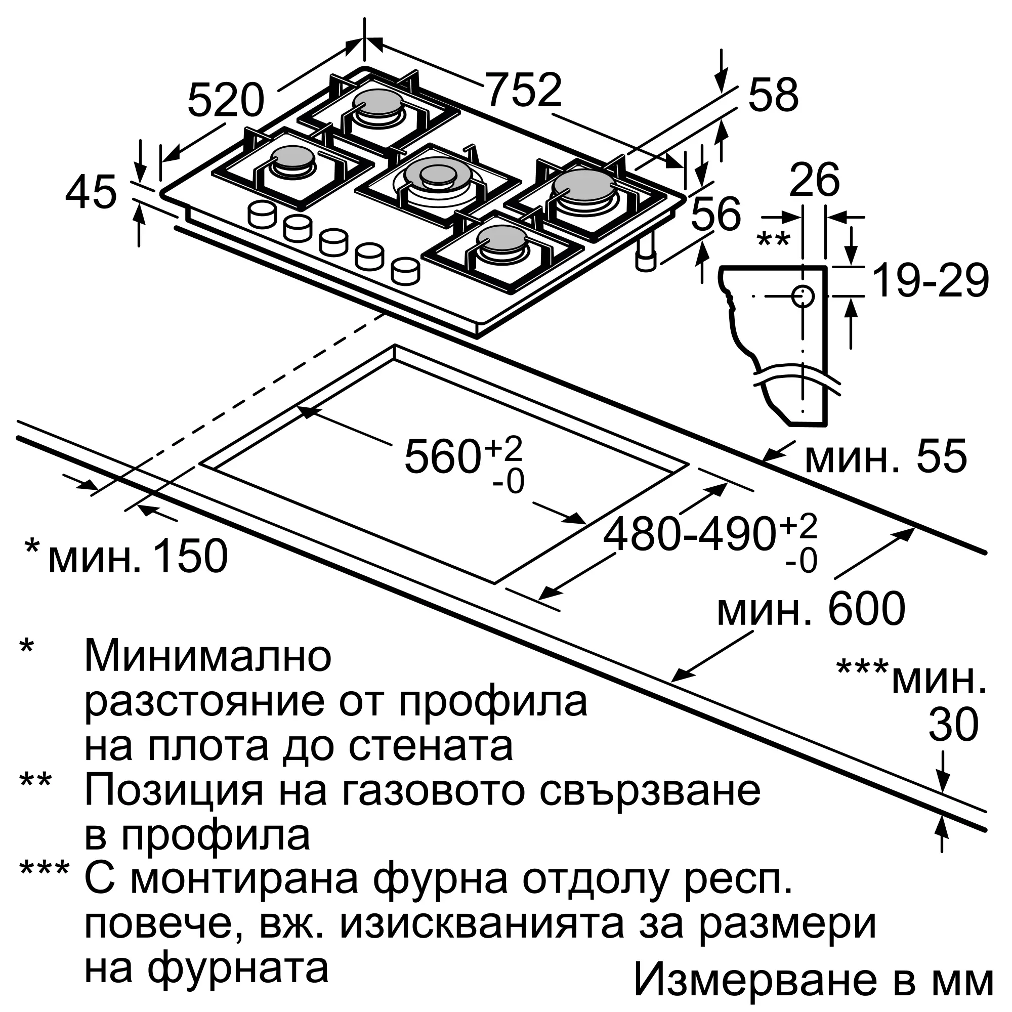 Монтаж в една равнина или над плот