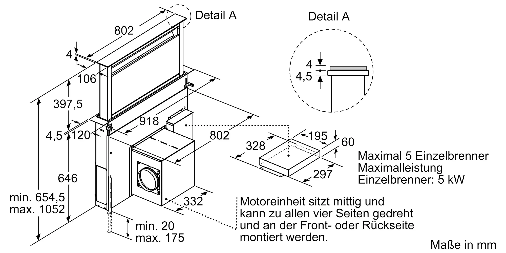 Abluft, Umluft (Sonderzubehör separat erhältlich)