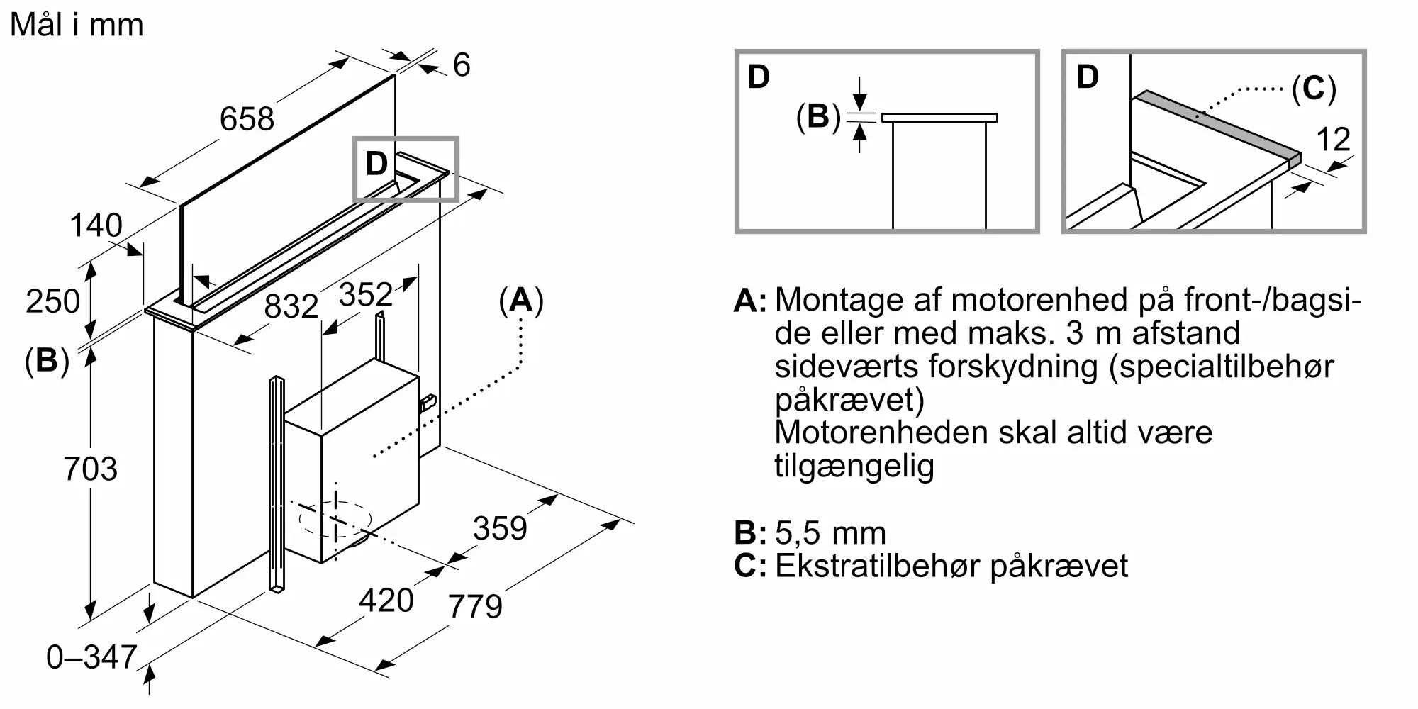 Aftræk / Recirkulation (tilbehør fås separat)