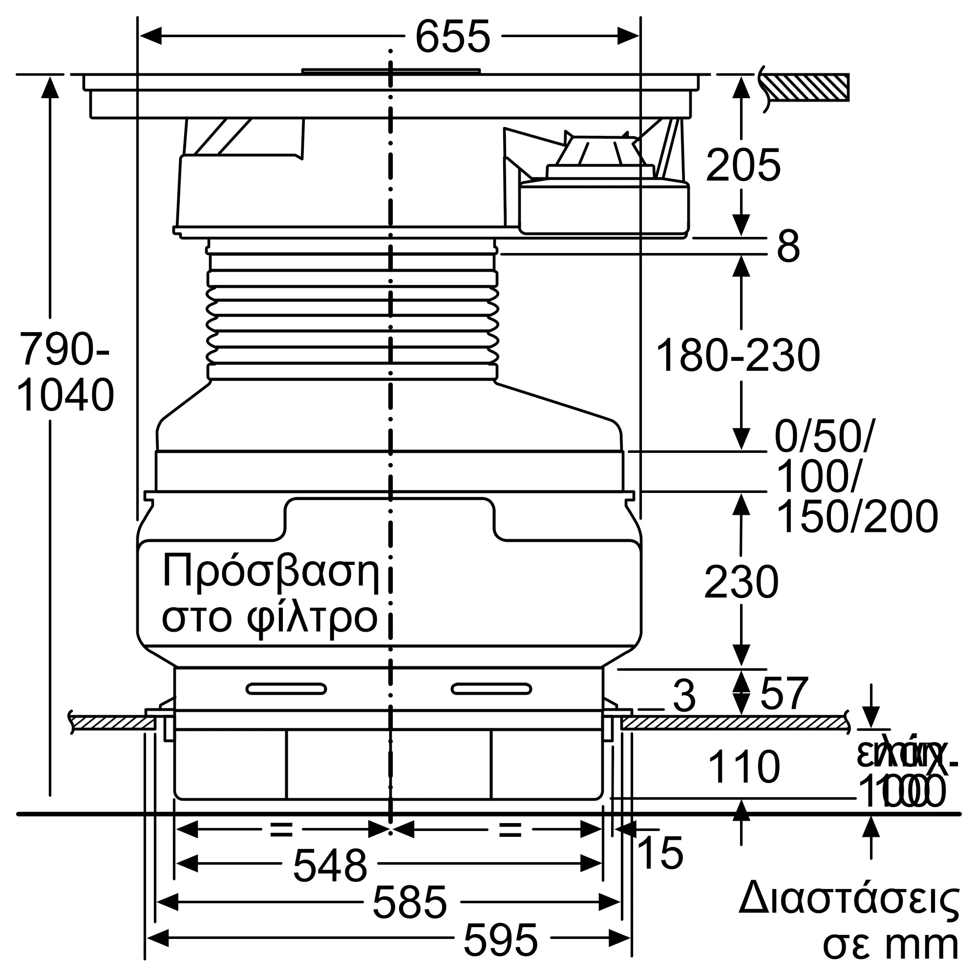 Διαστάσεις Εσωτερικής μονάδας: (ΥxΠxΒ)