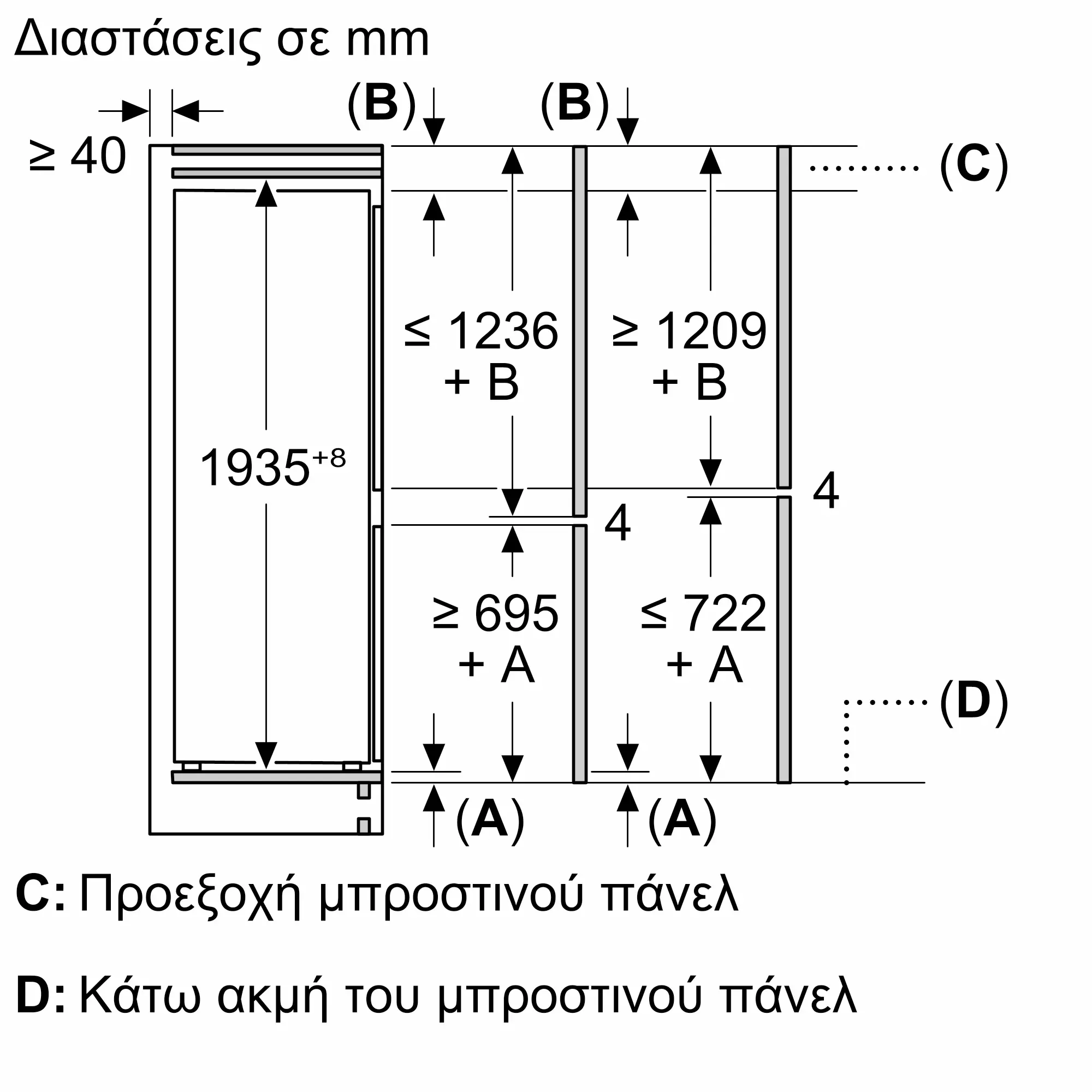 Διαστάσεις Εσωτερικής μονάδας: (ΥxΠxΒ)