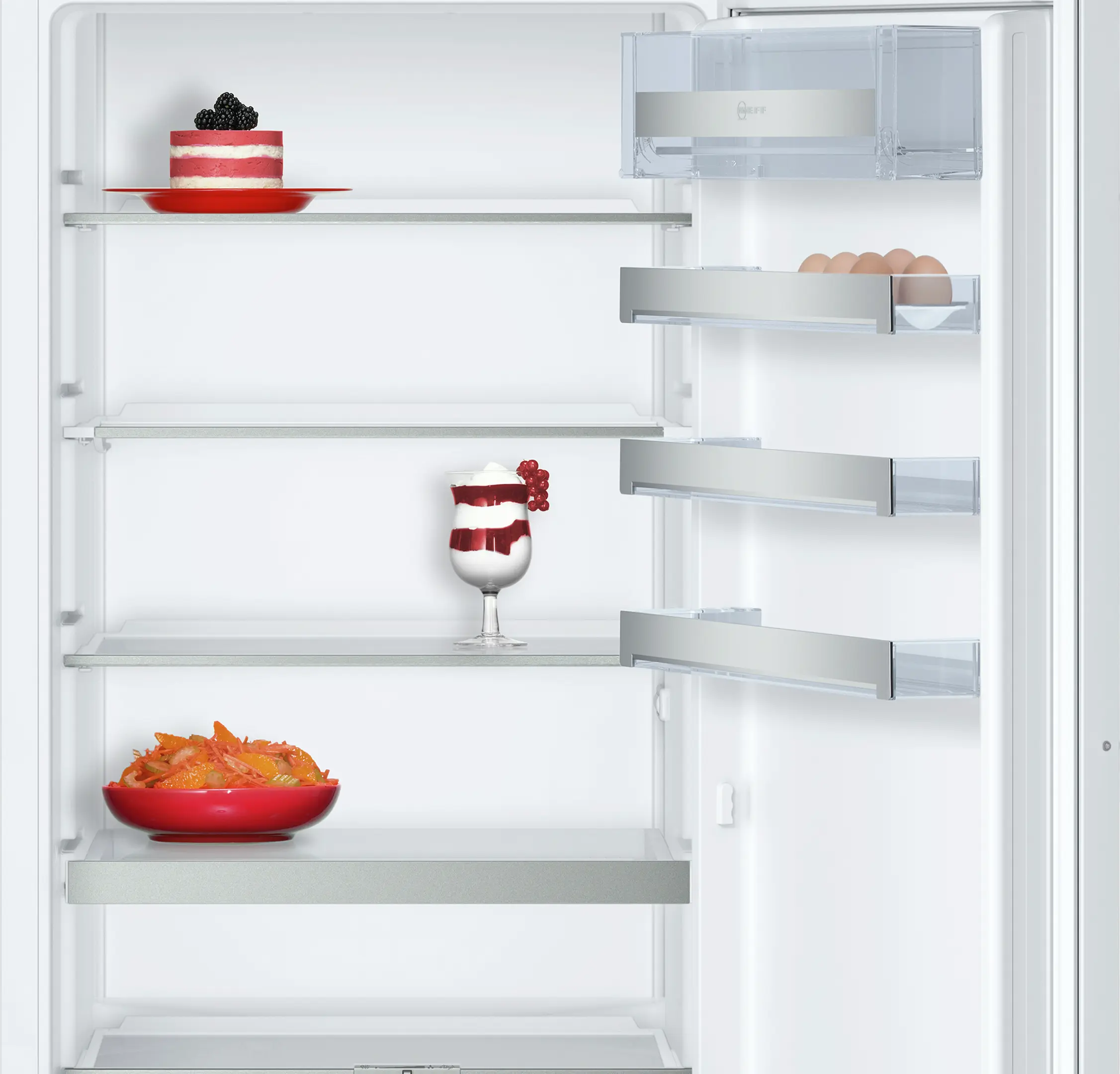 Our safety glass shelves happily shoulder generous loads of delicacies in your fridge
