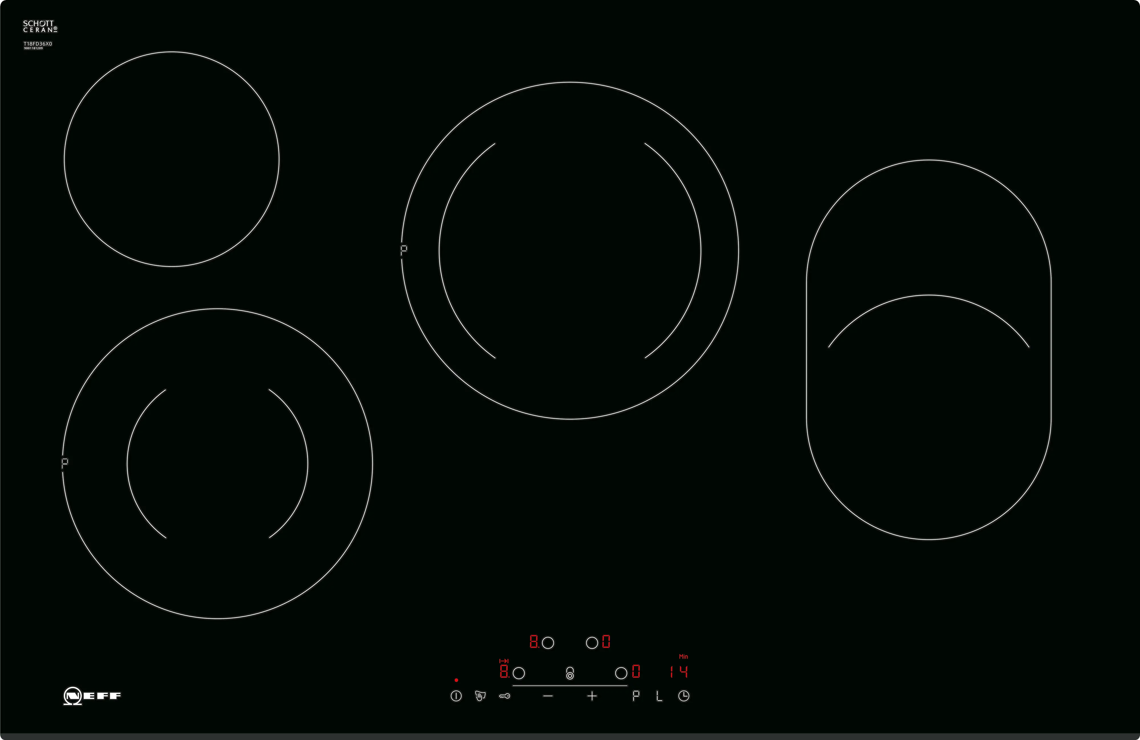 Two-ring cooking zone, Roaster zone