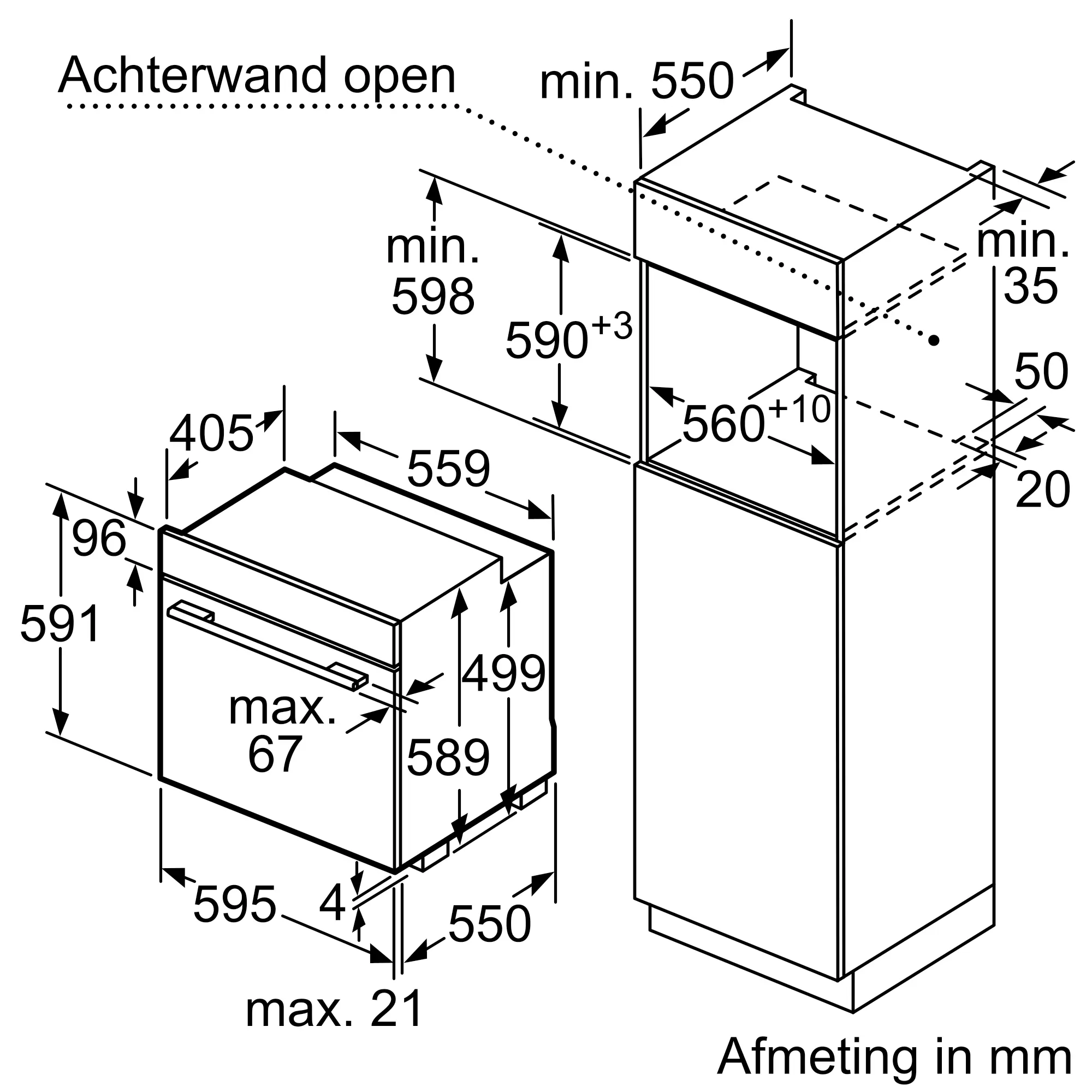 595x595x550 mm