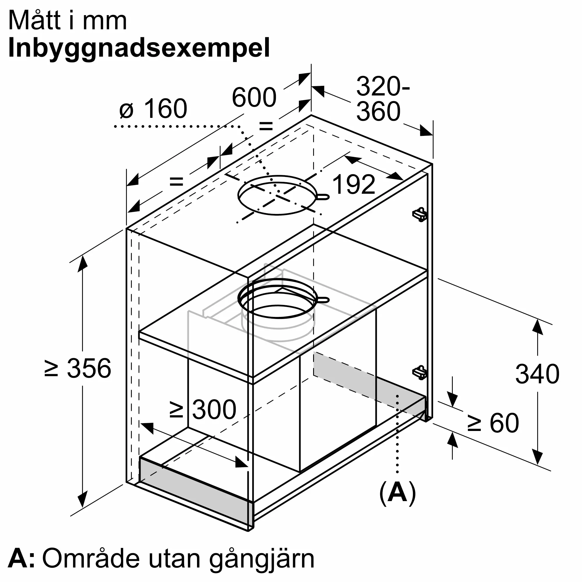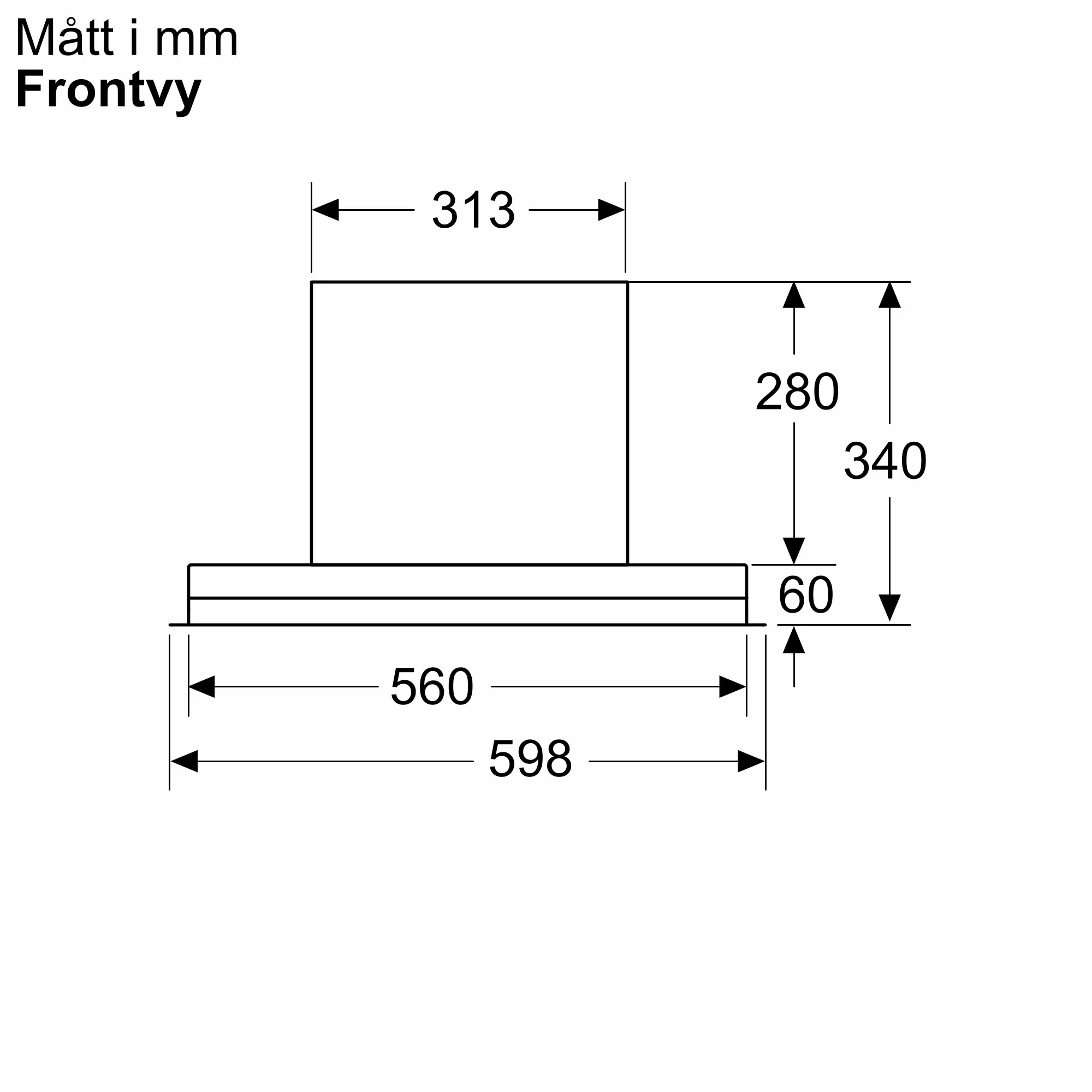 N 90 Skåpsintegrerad köksfläkt 60 cm Klarglas med svart tryck, MattsvartD69XET2S5