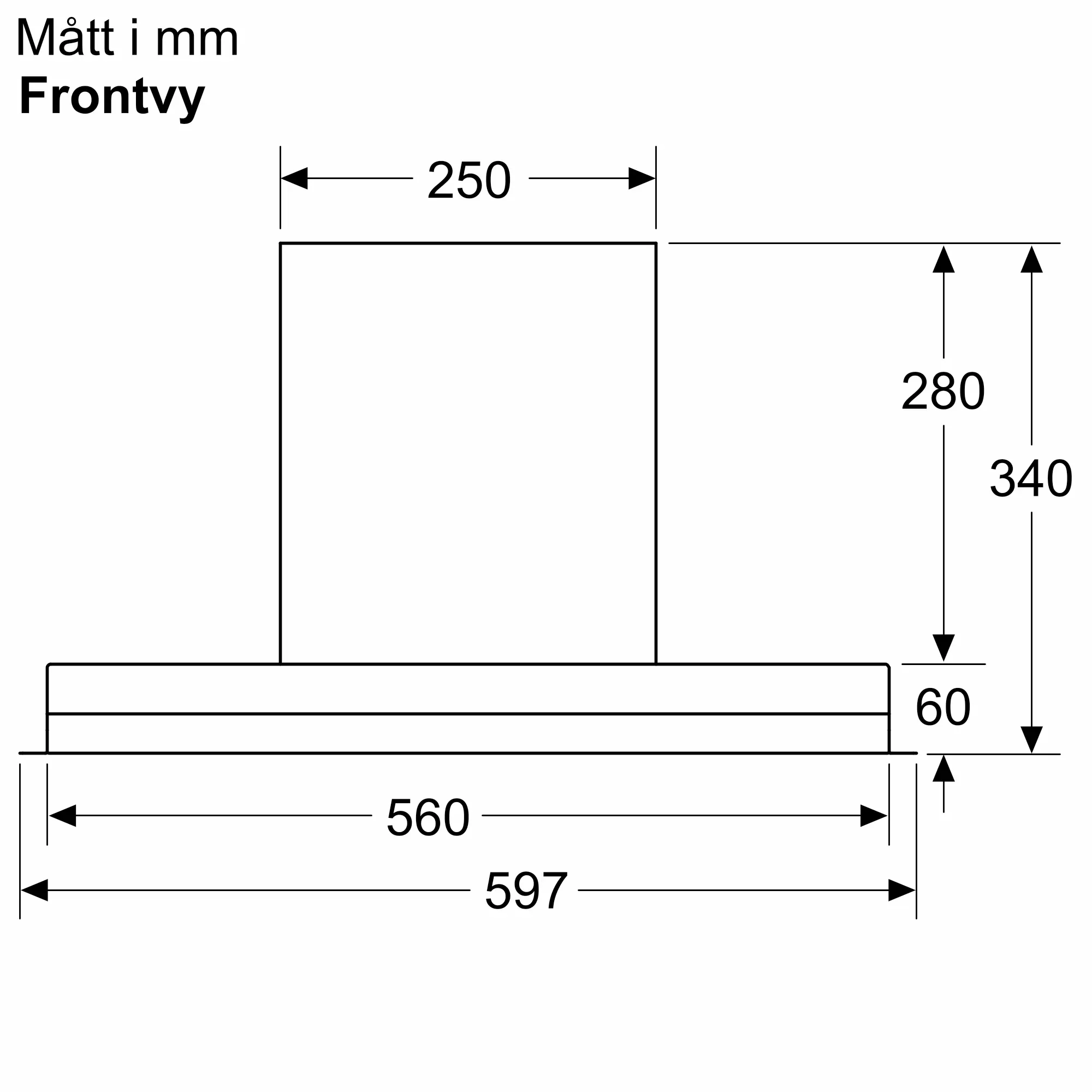 N 70 Skåpsintegrerad köksfläkt 60 cm Klarglas med svart tryck, SvartD65XAM2S0