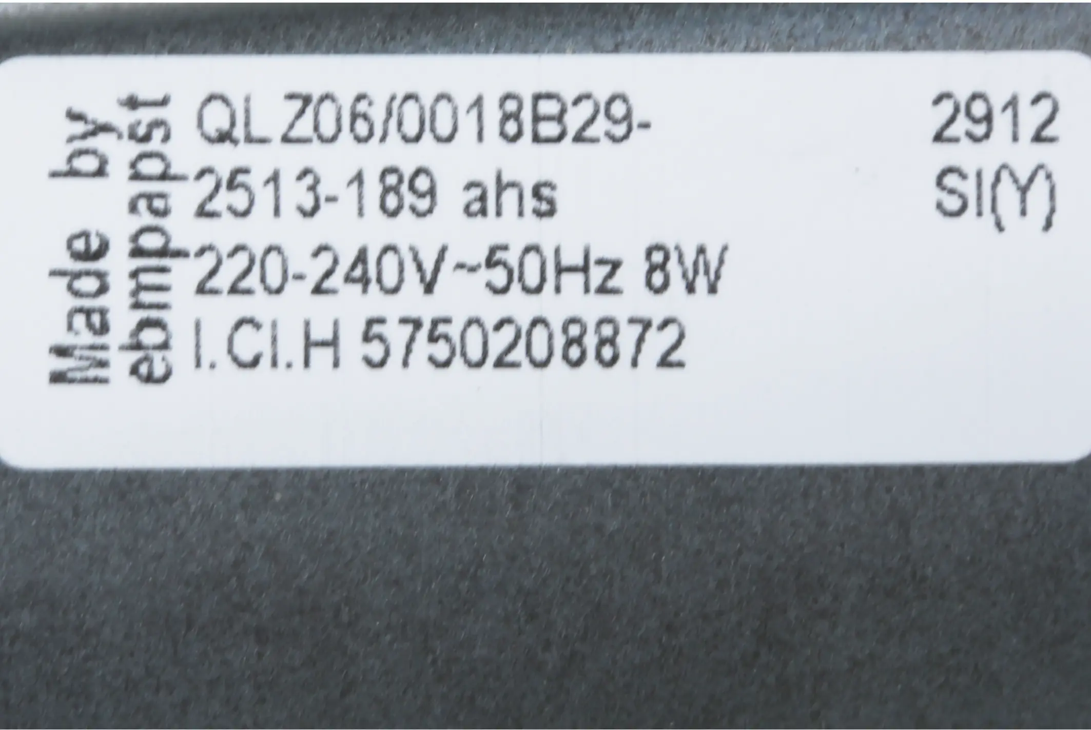 Fan motor cooling system, 220-240V, 50Hz, 8W00496076