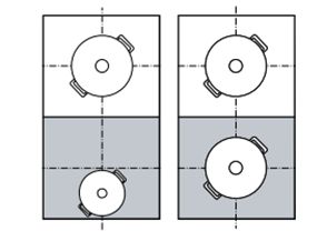 NEFF's FlexInduction zones allow you to place pans anywhere within a defined area, and the hob automatically detects the size and shape of the cookware. The heat is distributed evenly across the entire cooking zone, making it ideal for cooking with multiple pans or larger cookware.In order to guarantee good thermal detection and heat distribution, we recommend positioning the cookware in the centre, as shown in the figures.