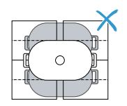 Do not place cookware in the middle between the right and left zones. The cooking zones are not activated correctly and you do not achieve a good cooking result.
