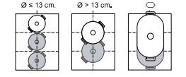 - Position the cookware depending on the size: