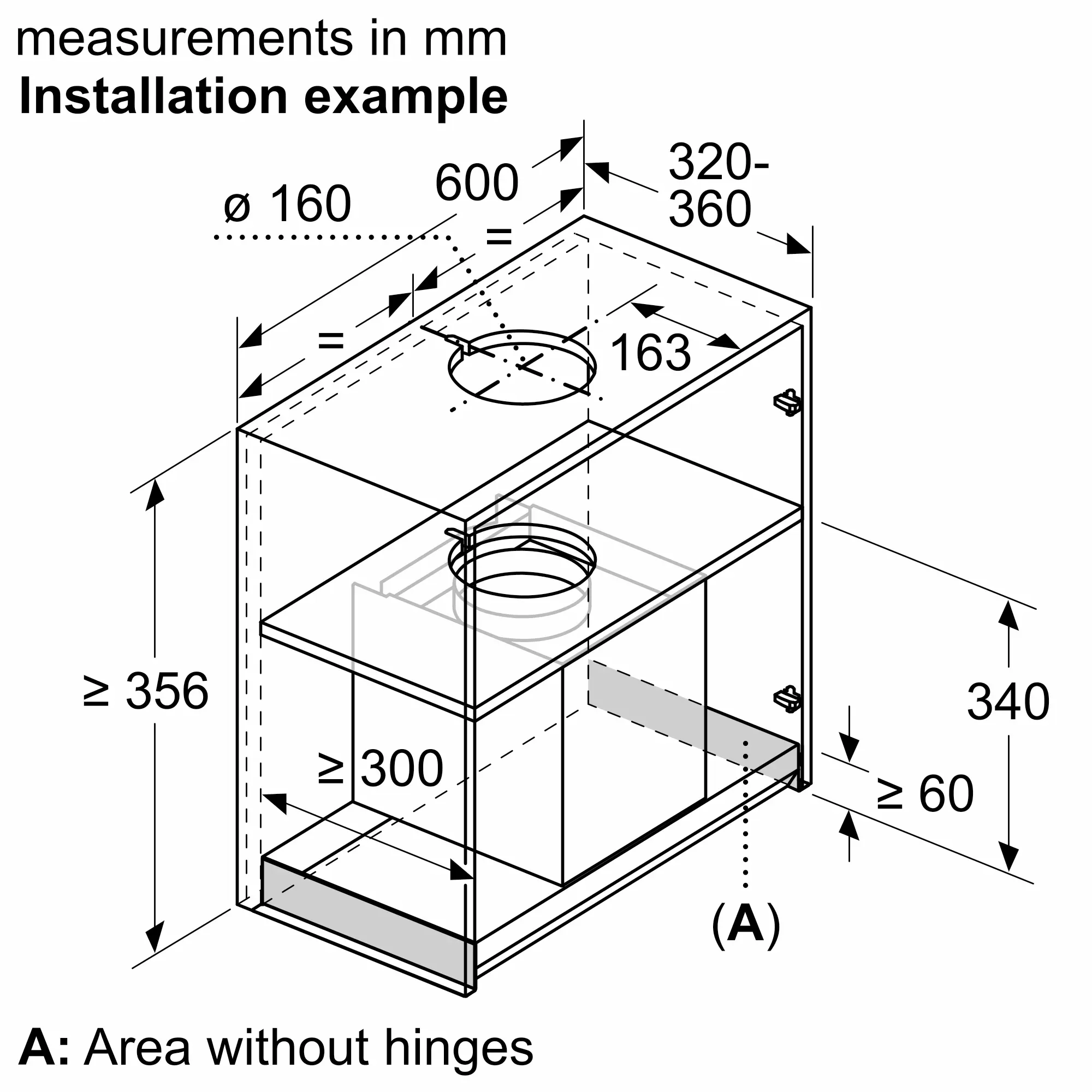 N 70 Integrated Design Hood 60 cm clear glass black printed, BlackD65XAM2S0B